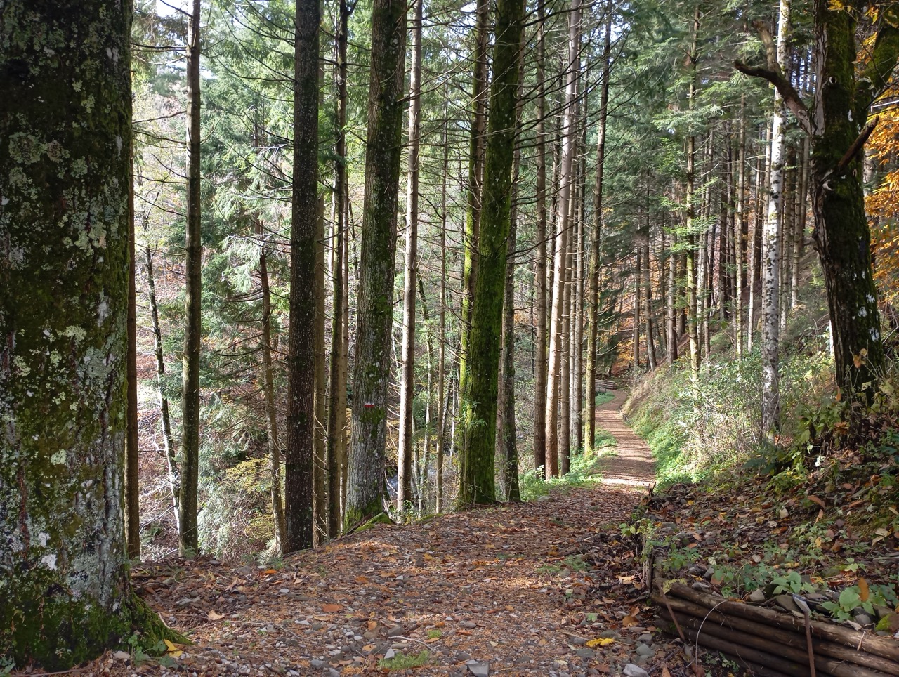 Il ritorno è lungo la pista forestale - sentiero CAI 32 dell’andata, questa volta senza deviazioni. Il percorso completo è lungo 6.15 km, per un dislivello complessivo di 244 m in salita.