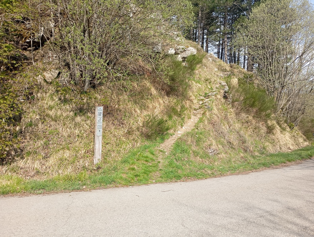 Dalla strada, si prende il sentiero CAI 22 di fronte che sale deciso verso i prati di crinale.