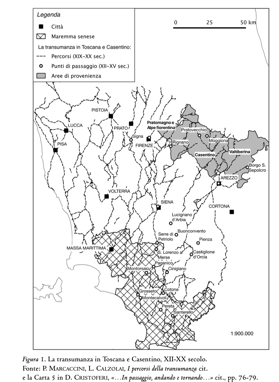 Per tale motivo il Casentino fu il principale bacino di allevamento del bestiame ovino e bovino transumante in Toscana fra Medioevo ed età moderna, insieme alle montagne confinanti della Valtiberina e dell’Appennino romagnolo. Un fenomeno pluri-secolare che si è esaurito solamente negli anni ’50 del secolo scorso, in cui ancora verso la Maremma transitavano circa 20,000 capi ovini, di cui la metà provenivano dalle montagne del Casentino e del Pratomagno.