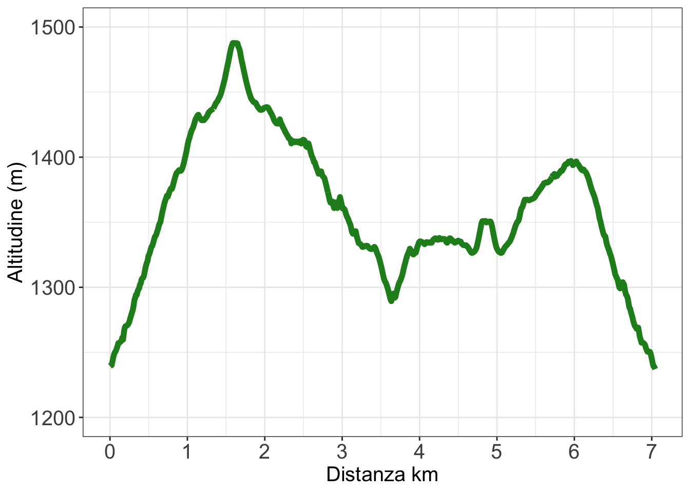 Tutto il percorso è lungo 7 km, per un dislivello complessivo in salita di 350 m.