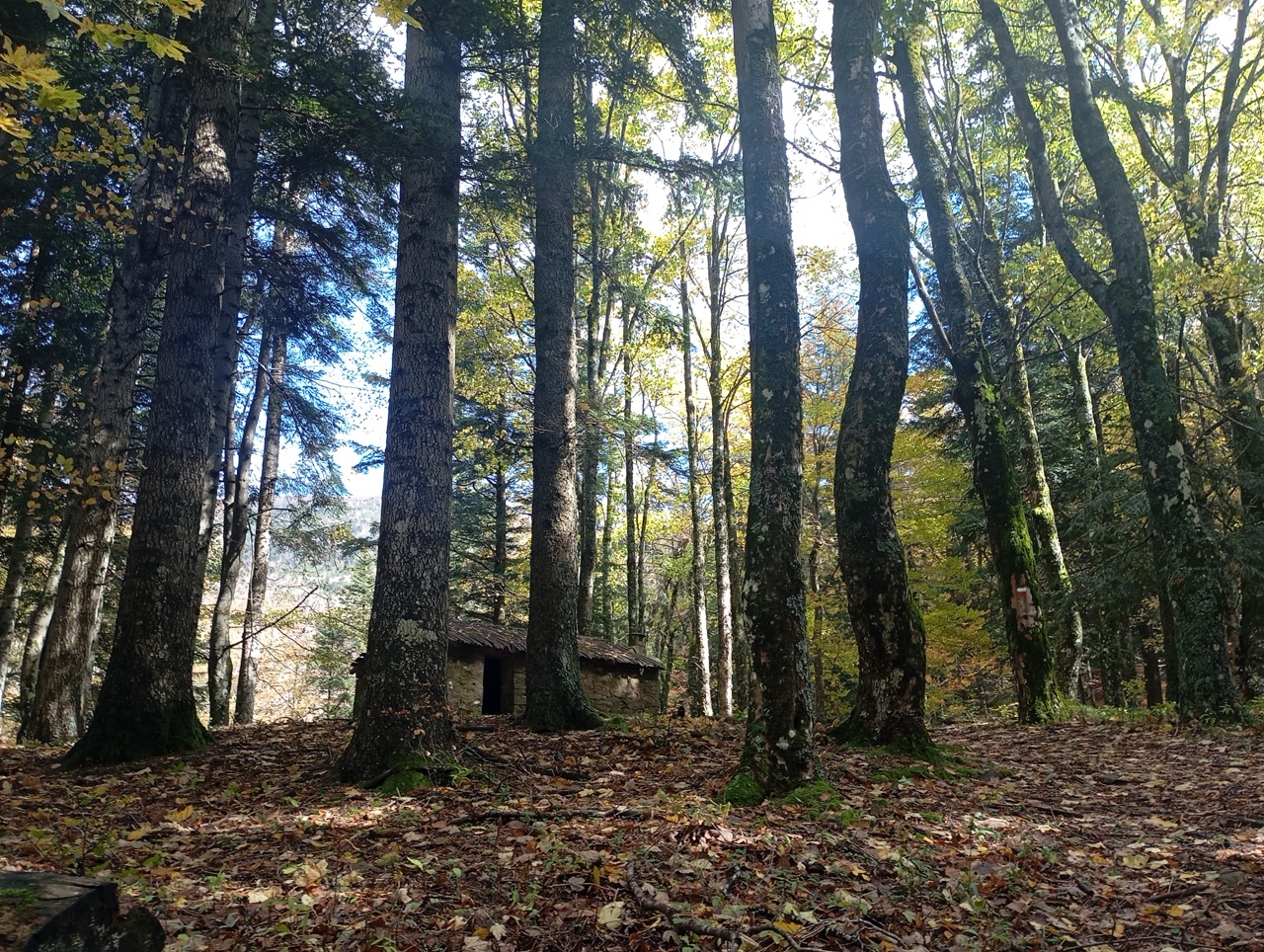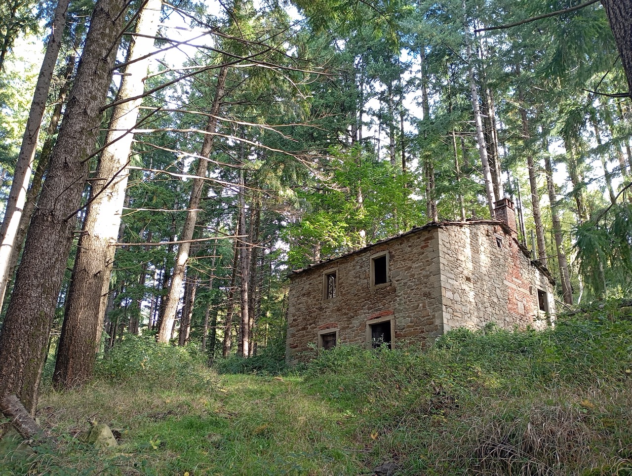 La Cascina è un posto bellissimo e merita una pausa per pranzo! Da qui la strada più agevole seguirebbe seguire la strada forestale, ma qui decidiamo di prendere il ripido sentiero in salita - CAI 82 - che sale lungo il fosso, per ammirare una bella faggeta, e che più avanti intercetta la strada forestale, che attraversiamo per un attimo prima di salire sul poggio Morgante, con il suo rifugio in pietra molto spartano.