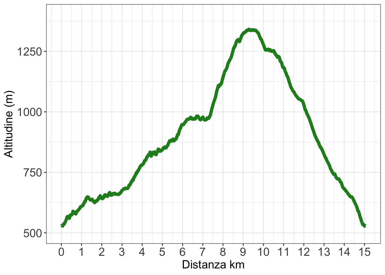 Tutto il percorso è lungo 15 km, per un dislivello complessivo di 860 m in salita. Il percorso è simile al Trek 25 “Nella verde valle dell’Oia”, della guida del Parco Nazionale.